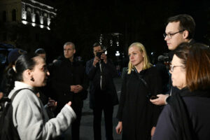 ელინა ვალტონენი – თბილისში, პარლამენტის შენობის წინ მშვიდობიანი დემონსტრანტები შეიკრიბნენ, რათა შეშფოთება გააჟღერონ ქვეყნის რეპრესიულ მიმართულებაზე – აქ მათ მხარდასაჭერად ვართ