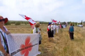 საოკუპაციო ხაზთან საქართველოს მოქალაქეები ოკუპაციის წინააღმდეგ, სიმბოლურად, ცოცხალ ჯაჭვს აკეთებენ.