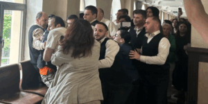 ხმაური ამ წუთებში საქალაქო სასამართლოში, სადაც მანდატურის სამსახური სამოქალაქო აქტივისტის