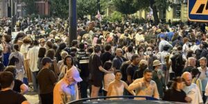 მოქალაქეები შეიკრიბნენ მათეს დაკავების ადგილზე და გამზირი გადაკეტეს. ხალხი გვემატება