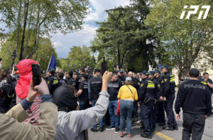 პარლამენტთან, აქციის მონაწილეებსა და სამართალდამცველებს შორის დაპირისპირებაა. პოლიციას აქციის მონაწილეები