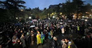 თბილისის სახელმწიფო უნივერსიტეტის პირველი კორპუსიდან რუსთაველის გამზირისკენ მსვლელობა მიმდინარეობს. მსვლელობაში