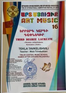 ზაქარია ფალიაშვილის სახელობის ცენტრალური სამუსიკო სკოლა „ნიჭიერთა ათწლედის“ მოსწავლე თეკლა