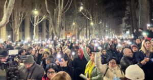 ილიას სახელმწიფო უნივერსიტეტთან შეკრებილი სტუდენტები მარშით რუსთაველის გამზირისკენ მიემართებიან. როგორც