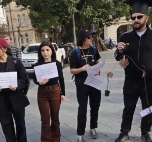 ბათუმში, საქართველოს საკონსტიტუციო სასამართლოსთან მოქალაქეები აქცია – პერფორმანსს მართავენ. მათი