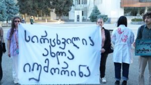 სამედიცინო უნივერსიტეტის ეზოში სტუდენტების პროტესტი მოყვა უნივერსიტეტის სააქტო დარბაზის დათმობას