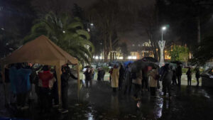 ქუთაისში საპროტესტო აქცია გრძელდება. მომიტინგეები კვლავ მერიის წინ იკრიბებიან, სადაც