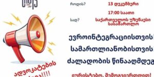 ხვალ, 13 დეკემბერს, 17:0 საათზე ადვოკატების აქცია გაიმართება. “ევროინტეგრაციისთვის“, “სამართლიანიბისთვის“,