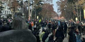 აქციის მონაწილეები თსუ-ის პირველ კორპუსთან იმყოფებიან. ვარაზისხევის ტერიტორიაზე, ჭავჭავაძის გამზირი