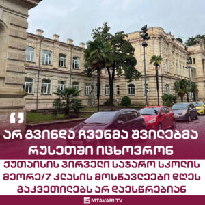 მშობლების გადაწყვეტილებით, ქუთაისის პირველი საჯარო სკოლის მეორე/7 კლასის მოსწავლეები დღეს