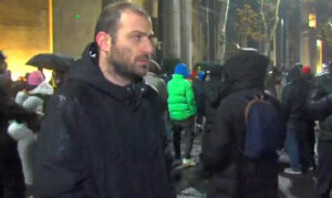 ადვოკატი ბექა ბასილია, რომელიც პარლამენტის მიმდებარე საპროტესტო აქციაზე 30 ნოემბერს