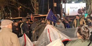 თბილისის სახელწმიფო უნივერსიტეტის პირველი კორპუსთან, 24-საათიანი უწყვეტი აქციის მონაწილეებმა კარვების