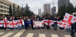 თბილისის სახელმწიფო უნივერსიტეტის ზუსტი და საბუნებისმეტყველო ფაკულტეტის სტუდენტები თსუ-ის მაღლივი კორპუსიდან თსუ-ის პირველ კორპუსთან მსვლელობით მიდიან