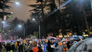 ქუთაისში საპროტესტო აქციის მონაწილეებმა მერიასთან გადაინაცვლეს. “მონებო”, “რუსებო” – სკანდირებენ