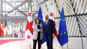 ევროპული საბჭოს პრეზიდენტი, შარლ მიშელი საქართველოს პრეზიდენტ სალომე ზურაბიშვილთან შეხვედრაზე