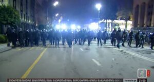 საპოლიციო ძალები ჭავჭავაძის გამზირზე, თბილისის სახელმწიფო უნივერსიტეტის პირველი კორპუსის მიმდებარედ