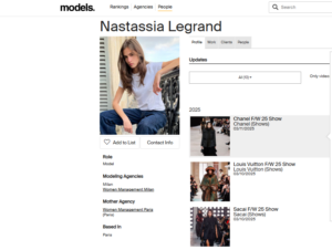 Models.com-ის ინფორმაციით, ახალგაზრდა მოდელი, ნასტასია ლეგრანმა კარიერა პარიზში, Women Management