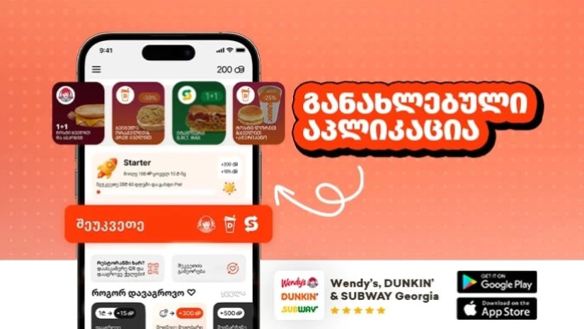 Dunkin', Wendy's®️, და SUBWAY®️ საქართველოში ციფრულ ტრანსფორმიას განაგრძობენ და მომხმარებლებს უნიკალურ აპლიკაციას სთავაზობენ, სადაც სამივე ლეგენდარული ამერიკული ბრენდის უგემრიელესი მენიუს შეძენა ერთ პლატფორმაზე, ახლა უკვე ყველაზე ინოვაციური ფორმით შეუძლიათ.