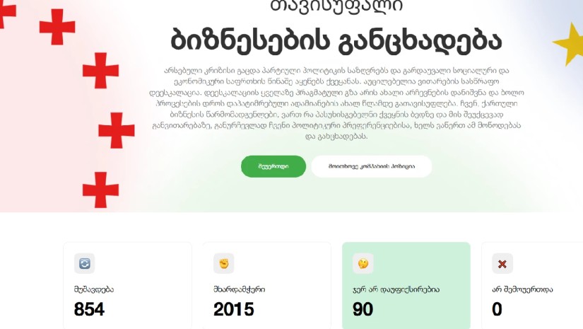 პლატფორმა Freebusiness.ge-ზე დარეგისტრირებული ბიზნესების რაოდენობამ 2000-ს გადააჭარბა. რეგისტრაციაზე 850-ზე მეტი მოთხოვნა კი მუშავდება. ათასობით კომპანია ახალი არჩევნების დანიშვნას და პროევროპულ აქციებზე დაკავებული მოქალაქეების ახალ წლამდე გათავისუფლებას ითხოვს.