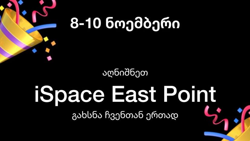 Apple-ის პრემიუმ რისელერმა საქართველოში, iSpace-მა რიგით მეექვსე ფილიალი თბილისში, სავაჭრო ცენტრ East Point-ში გახსნა და 8-9-10 ნოემბერს მომხმარებლისთვის 20-მდე დასახლების პროდუქტზე განსაკუთრებული შეთავაზებაც მოამზადა – ტექნიკასა და აქსესუარებზე ახალ ფილიალში 15%-იანი ქეშბექ აქცია იმოქმედებს.