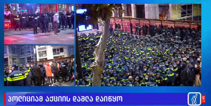 “2024 წლის 19 ნოემბერს, გამთენიისას, შინაგან საქმეთა სამინისტროს საპატრულო და კრიმინალური პოლიციის, აგრეთვე განსაკუთრებულ დავალებათა დეპარტამენტების გაერთიანებულმა ძალებმა დაარბიეს თბილისის სახელმწიფო უნივერსიტეტის წინ მიმდინარე მშვიდობიანი დემონსტრაცია.
