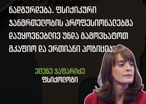 ელენე ქორიძე, ფსიქოლოგი: “ამ კანონის და ბაზის მეშვეობით გველის კატასტროფა: ყველაფერი, რაზეც დგას ფსიქიკური ჯანმრთელობის დარგი – ნადგურდება. შეეხება ყველას