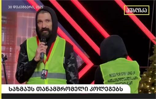 „საზოგადოებრივი მაუწყებლის“ ორმა თანამშრომლებმა – გიგა კიტიამ და ქეთევან სინიცამ არხის საიუბილეო ღონისძიებაზე სოლიდარობა გამოუცხადა არხიდან გათავისუფლებულ კახა მელიქიძეს. ორივე