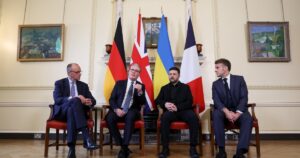 უკრაინის პრეზიდენტი ვოლოდიმირ ზელენსკი, დიდი ბრიტანეთის პრემიერ-მინისტრი კირ სტარმერი, საფრანგეთის