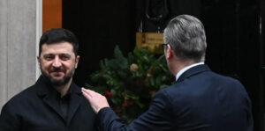 უკრაინის პრეზიდენტი ვოლოდიმირ ზელენსკი, დიდი ბრიტანეთის პრემიერ-მინისტრი კირ სტარმერი, საფრანგეთის