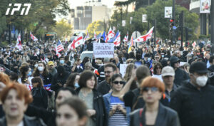სტუდენტები, რომლებიც თსუ-ს პირველი კორპუსიდან თავისუფლების მოედნამდე საპროტესტო მსვლელობას მართავენ,