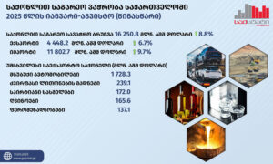 საქსტატის ინფორმაციით, 2025 წლის იანვარ-აგვისტოში საქართველოს საგარეო სავაჭრო ბრუნვამ 16.25