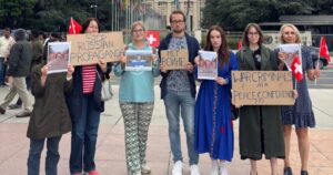 ჟენევაში საპროტესტო აქცია მოჰყვა, შვეიცარიაში რუსეთის დელეგაციის ჩასვლას, რუსეთის პარლამენტის