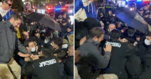 აღდგომის დღეს, გვიან ღამით რუსთაველის გამზირზე, სადაც საპროტესტო აქცია მიმდინარეობდა,