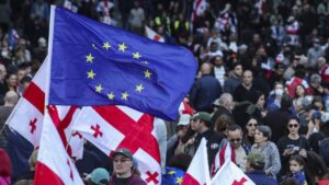რუსთაველის გამზირზე საპროტესტო აქცია მიმდინარეობს. პროტესტის 322-ე დღეს პარლამენტის წინ