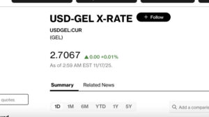 Bloomberg-ის სავაჭრო პლატფორმაზე 12:00 საათისთვის ერთი დოლარი 2.7067 ლარად ივაჭრება.