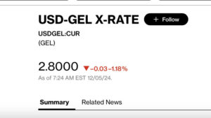 Bloomberg-ის სავაჭრო პლატფორმაზე 16:30 საათისთვის ერთი დოლარი 2.8000 ლარად ივაჭრება.