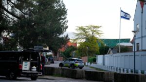 დანიის პოლიცია იძიებს კოპენჰაგენში, ისრაელის საელჩოს მახლობლად დღეს, 2 ოქტომბერს,