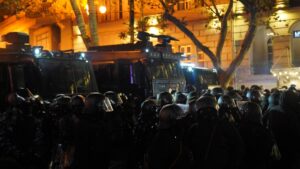თბილისში, რუსთაველის გამზირზე საპროტესტო აქციის მიმდინარეობისას (30 ნოემბრის ღამიდან 1