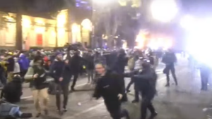 პარლამენტთან შეკრებილთა ნაწილი, სამართალდამცველებს უპირისპირდება, სიტყვიერ შეურაცხყოფას აყენებს, დააზიანეს განათების