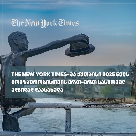 „საქართველო, კერძოდ, ქუთაისი ერთ-ერთი ადგილია, რომელიც ტურიზმის მოყვარულმა ადამიანმა 2025 წელს უნდა მოინახულოს“ – ამის შესახებ The New York Times-ის ამერიკულ გამოცემაში წერენ.