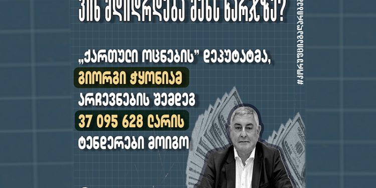 „ქართული ოცნების” დეპუტატის, გიორგი ჭყონიას კომპანია „გზამ” 2024 წლის 26 ოქტომბრის საპარლამენტო არჩევნების შემდეგ 5 სახელმწიფო შესყიდვიდან 37,095,628 ლარი მიიღო – ინფორმაციას “საერთაშორისო გამჭვირვალობა საქართველო” ავრცელებს.