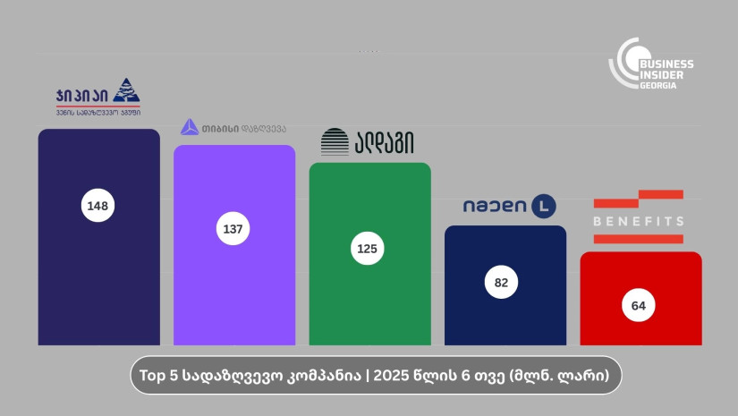 2025 წლის 6 თვის მაჩვენებლებით, საქართველოს სადაზღვევო ბაზარზე მოზიდული პრემიის მიხედვით ჯიპიაი ლიდერობს. სადაზღვევო კომპანიამ მიმდინარე წლის პირველ ნახევარში 148 მლნ ლარის სადაზღვევო პრემია მოიზიდა. მეორე ადგილზეა თიბისი დაზღვევა, რომლის მიერ მოზიდულმა პრემიამ 137 მლნ ლარი შეადგინა. მესამე პოზიციაზე კი ალდაგია, რომელმაც 6 თვეში 125 მლნ ლარის პრემია მოიზიდა.