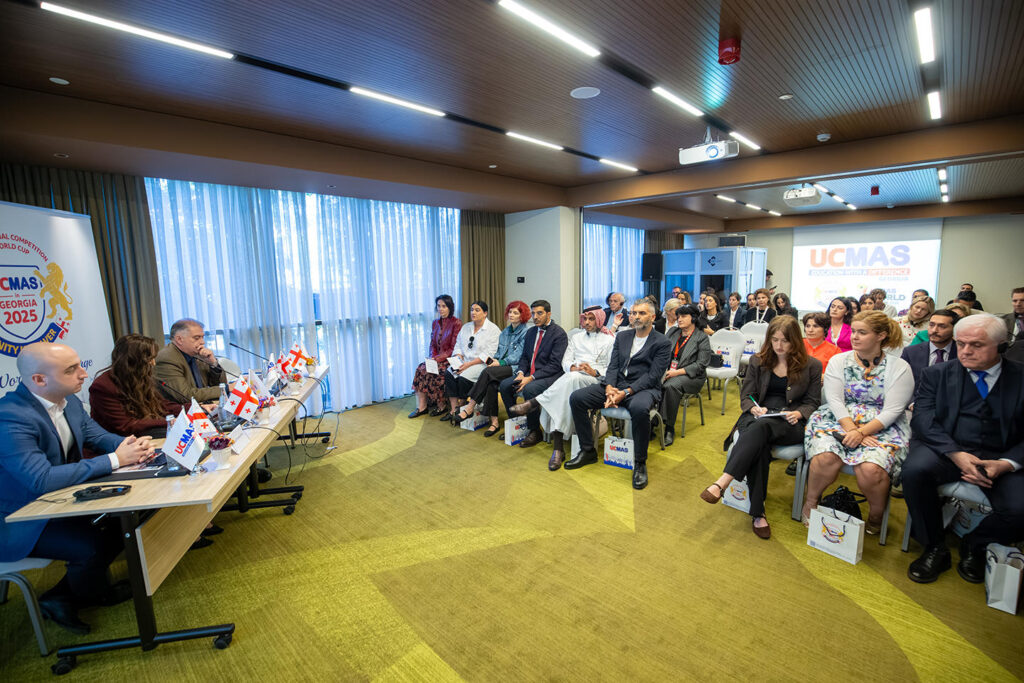 საქართველო დეკემბერში მასპინძლობს, მენტალური არითმეტიკის საერთაშორისო შეჯიბრებას და მსოფლიო თასს, რომელიც საქართველოს ეროვნული უნივერსიტეტში (SEU), 2025 წლის 6–7 დეკემბერს ჩატარდება. UCMAS-ის საერთაშორისო კონკურსი და მსოფლიო თასი 2025 — წლის ერთ-ერთი ყველაზე მასშტაბური საგანმანათლებლო ღონისძიებაა. აღნიშნულ თემასთან დაკავშირებით 24 სექტემბერს, სასტუმრო სვისჰოტელში გაიმართა პრესკონფერენცია, სადაც ოფიციალურად გაჟღერდა კონკურსის შესახებ დეტალები. ღონისძიებას ესწრებოდნენ იუსიმასის ოფიციალური ფრენჩაიზის მფლობელი საქართველოში ქალბატონი საჰარ ჰარბი, ქ. თბილისის მუნიციპალიტეტის მერიის კულტურის, განათლების, სპორტისა და ახალგაზრდულ საქმეთა საქალაქო სამსახურის უფროსის მოადგილე ბატონი ვასილ ქარსელაძე, საქართველოს ეროვნული უნივერსიტეტის (სეუ) ვიცე-რექტორი აკადემიური მიმართულებით ბატონი გიორგი ღავთაძე. ღონისძიებას ასევე ოფიციალური მხარდამჭერები იყვნენ საქართველოში საუდის არაბეთის სამეფო და იტალიის საელჩო.