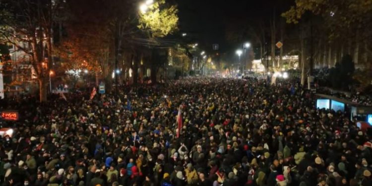 “გუშინდელი დემონსტრაცია რუსთაველის გამზირზე ერთ-ერთი ყველაზე მასშტაბური და სულისშემძვრელი იყო, სადაც 100 000-მდე ადამიანი აპროტესტებდა ხელისუფლების ანტიდასავლურ და პრორუსულ ცვლილებას,” – წერს Visioner-ი.